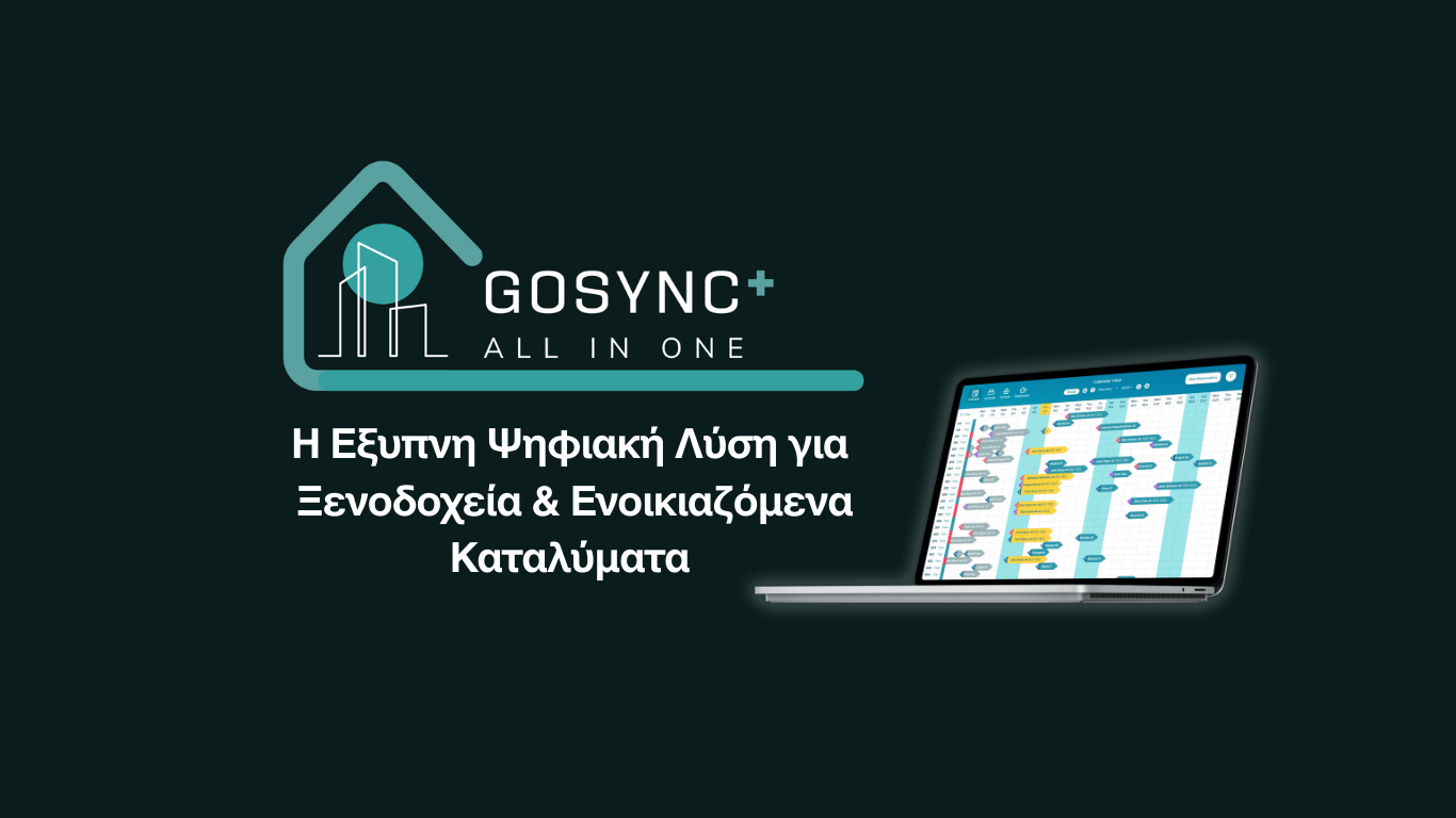 Είτε διαχειρίζεστε ξενοδοχείο, είτε τουριστικά καταλύματα, το GOSYNC παρέχει τα εργαλεία που χρειάζεστε για να πετύχετε. Η ολοκληρωμένη πλατφόρμα μας συνδυάζει διαχείριση καταλύματος, διανομή καναλιών, επικοινωνία με επισκέπτες και απευθείας κρατήσεις σε μία ενιαία λύση που προσαρμόζεται στις μοναδικές σας απαιτήσεις.